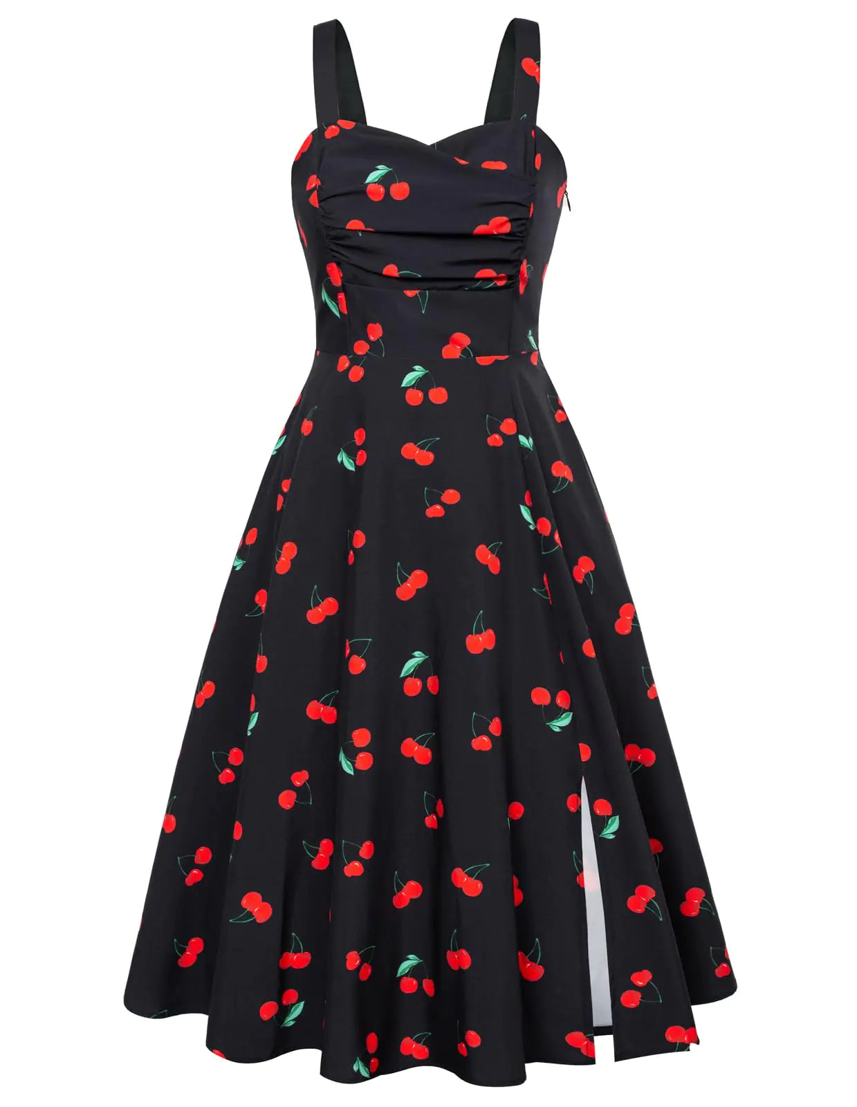 ["Fabric: This women's vintage dress is made of soft skin-friendly stretchy and lightweight material not see-through with lining comfortable for wear all day" Features: sleeveless sweatheart neck ruched adjustable spaghetti strap concealed zipper in the back front slit smocked back swing skirted A-line silhouette "Classy Fit and Flare Dress: Cute and elegant spaghetti straps ruched swing dress show your charming feminine silhouette. Its convenient and easy to put on or take off with hidden zipper at back. The elastic design on the back provides maximum tolerance for your body shape. The slit in the front side adds a higher level of sexiness to you and is full of charm" "Vintage Cocktail Dresses: Classic 50s vintage themes! Retro Swing Rockabilly Cocktail Dress! Whether its a 1960s or a 1940s theme party this rockabilly dress will exceed your expectations! Summer sleeveless sweetheart wedding guest formal casual tea prom flare A-line midi dresses" Dress It Up or Down : The flared a line swing sundress is perfect for cocktail evening party prom wedding bridesmaid birthday dating banquet Homecoming rockabilly dancing costumes ball holiday work going out casual daily wear or special occasions.]